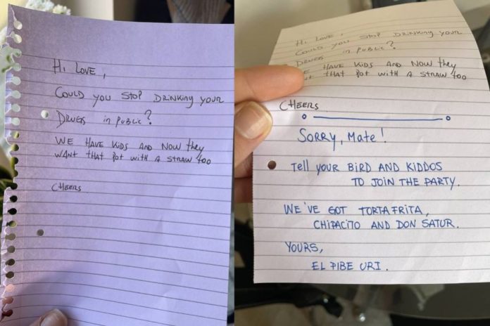 Un joven argentino que vive en Inglaterra generó furor en redes sociales al mostrar como un vecino le solicitaba en una carta si podía dejar de “beber drogas en público” luego de haberlo visto tomando mate.