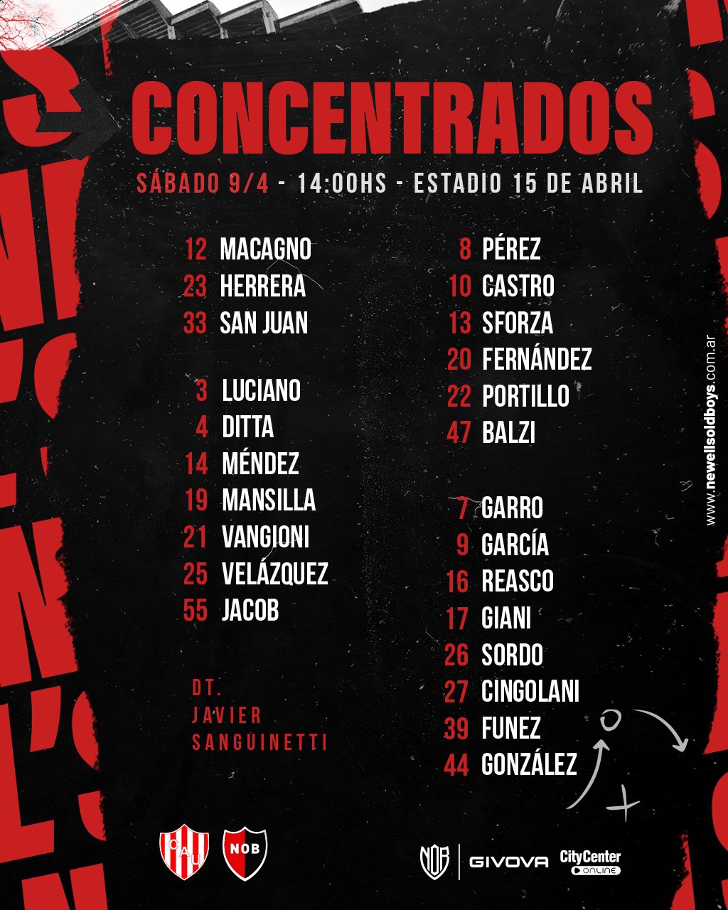 Newells: 12- Ramiro Macagno/ 14- Armando Méndez, 25- Gustavo Velázquez, 4- Willer Ditta y 3- Martín Luciano/ 7- Juan Garro, 8- Pablo Pérez, 20- Julián Fernández y 44- Francisco González/ 10- Nicolás Castro y 9- Juan Manuel García. DT: Javier Sanguinetti.