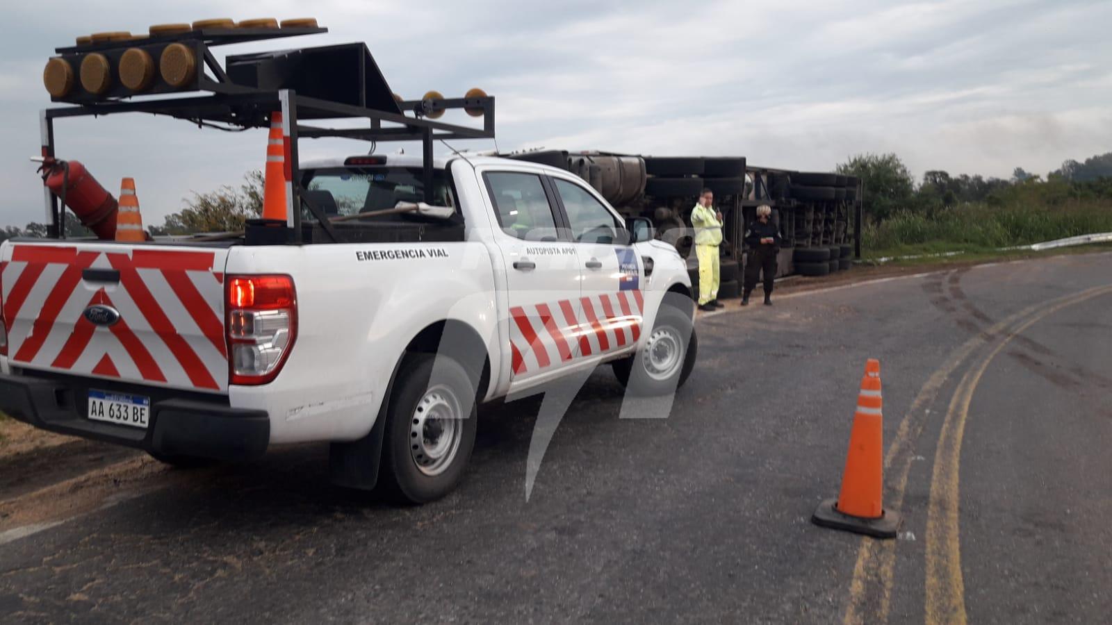 Alrededor de las 7, en la intersección la Autovía 19, hacia el acceso a la ciudad de Santo Tomé, el vehículo de carga despistó tras perder el control debido al peso del acoplado. En consecuencia, el rodado de gran porte quedó volcado sobre la banquina, reportó el móvil de Radio EME.