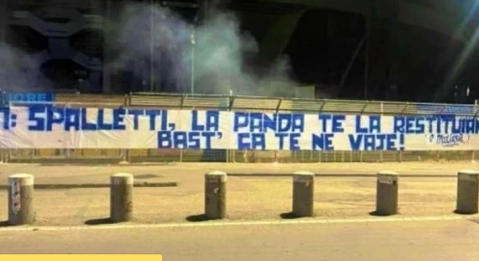«16-10-21: Spalletti, te devolveremos tu Panda (marca del auto del entrenador)… ¡siempre y cuando te vayas!», se puede leer en la pancarta. Llama la atención, ya que el Napoli está tercero en la Serie A, la que peleó hasta donde pudo y, además, se aseguró un boleto a la próxima Champions League.