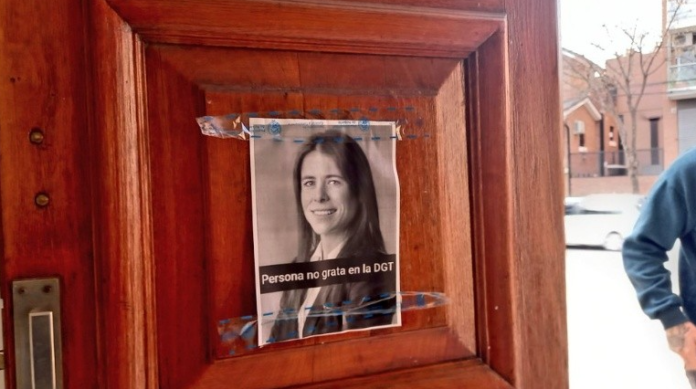Este jueves, las oficinas de la Dirección General de Tránsito de la Municipalidad de Rosario, ubicadas en el edifico de Moreno al 2500, fueron empapeladas con carteles que tenían el rostro de la secretaria de control y Convivencia de la Municipalidad de Rosario, Carolina Labayru, con la leyenda «persona no grata en el DGT».