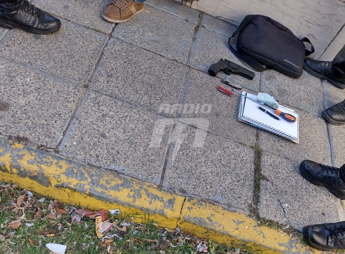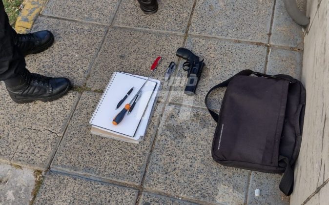 Inmediatamente actuó el personal de la Guardia de Seguridad Institucional, quienes lo acompañaron hasta la salida del Palacio Municipal, lo detuvieron y llamaron al 911. Cuando llegó la policía, abrieron la mochila del hombre y tenía dos navajas, y un destornillador grande.