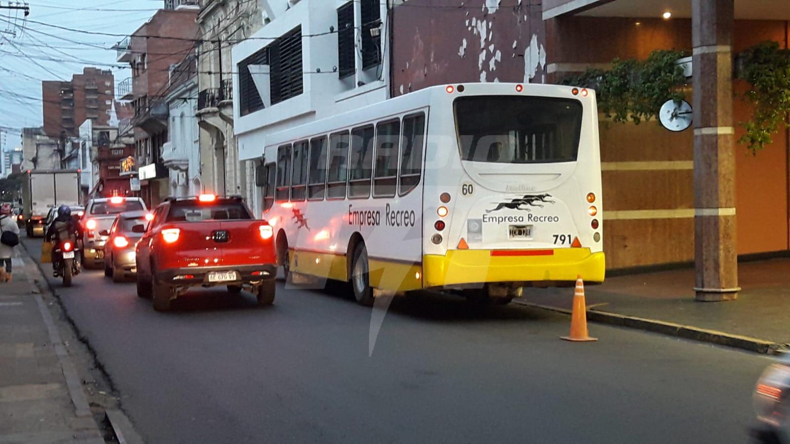 Un colectivo de la línea 8 realizaba su recorrido habitual sobre calle San Jerónimo casi Irigoyen Freyre cuando un automóvil intentó superarlo y lo golpeó en el lateral izquierdo. Sin notarlo, la unidad de gran porte siguió con su trayecto, pero inmediatamente fue interceptado por el coche.