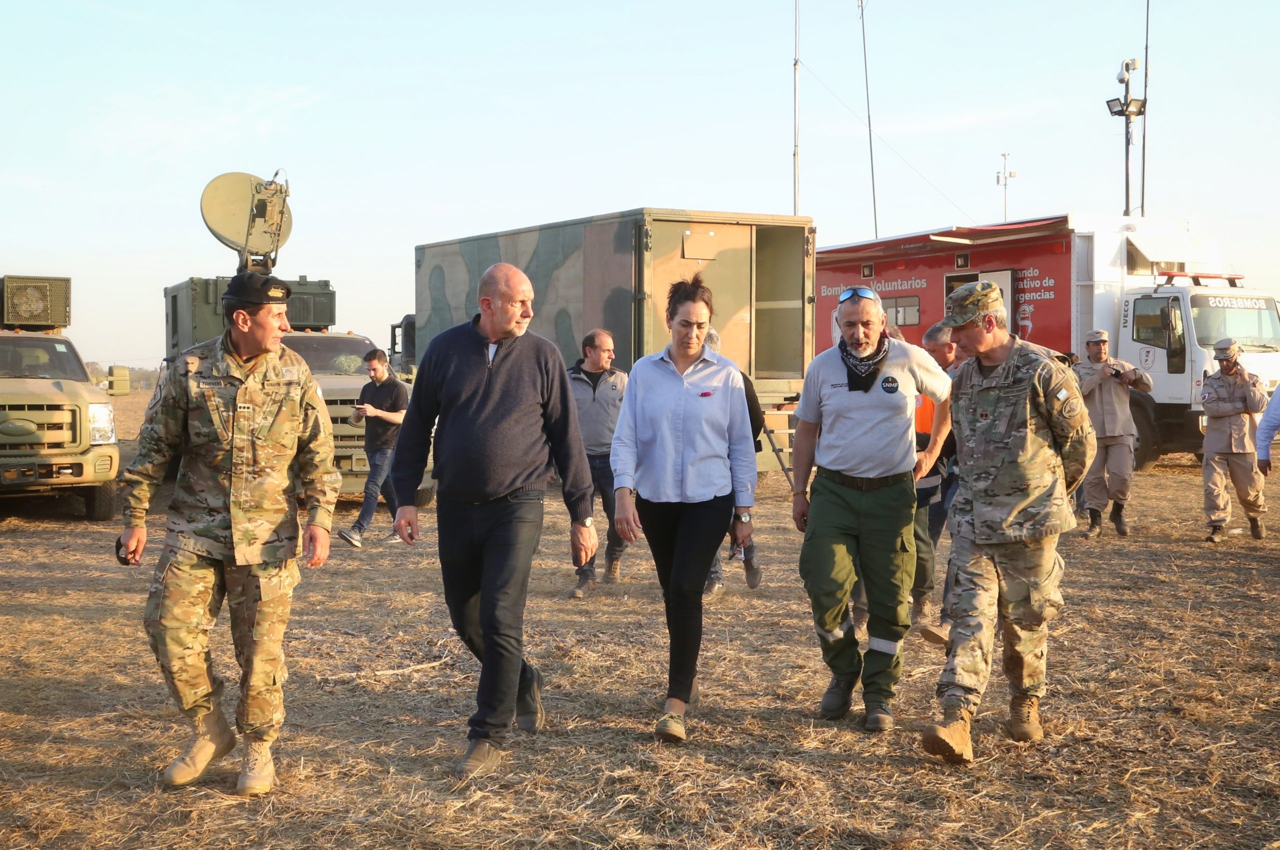 De la recorrida también participaron, la secretaria de Coordinación Militar en Emergencias del Ministerio de Defensa de Nación, Inés Barboza; el director del Servicio Nacional de Manejo del Fuego, Alberto Seufferheld; el viceministro de Salud de Nación, Alejandro Colli; el secretario de Ambiente de Entre Ríos, Mauricio Velázquez; el subsecretario de Protección Civil de Nación, Gabriel Gasparutti; la directora Nacional de Planeamiento para la Asistencia en Emergencias del Ministerio de Defensa de Nación, Alejandra Bonadé; el secretario de Protección Civil de Santa Fe, Roberto Rioja; la directora de Conservación del Ministerio de Ambiente y Cambio Climático de Santa Fe, Clara Mitchell, y autoridades del Estado Mayor Conjunto de las Fuerzas Armadas, entre otros.