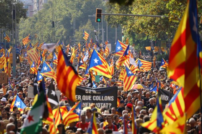 La policía de Barcelona calculó que asistieron a la manifestación unas 150.000 personas. Los organizadores aseguraron que fueron varios cientos de miles más. En medio de un mar de banderas independentistas, algunos manifestantes llevaban pancartas exigiendo a las autoridades catalanas que hicieran una “Declaración de independencia o renuncien”.