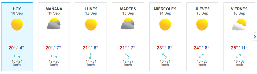 En tanto, para el lunes se aguarda cielo algo nublado; 6° de mínima y 25° de máxima.