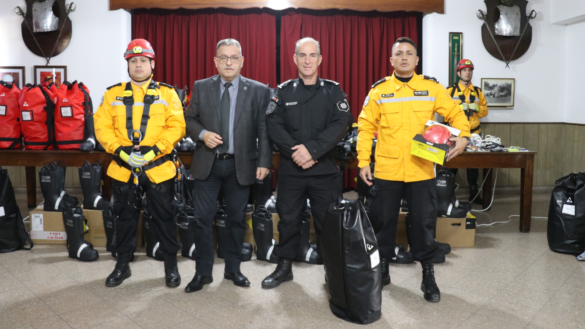 Se trata de elementos específicos para el Grupo Especial de Rescatistas Zapadores. También se entregaron matafuegos para ser distribuidos en las diversas dependencias policiales.