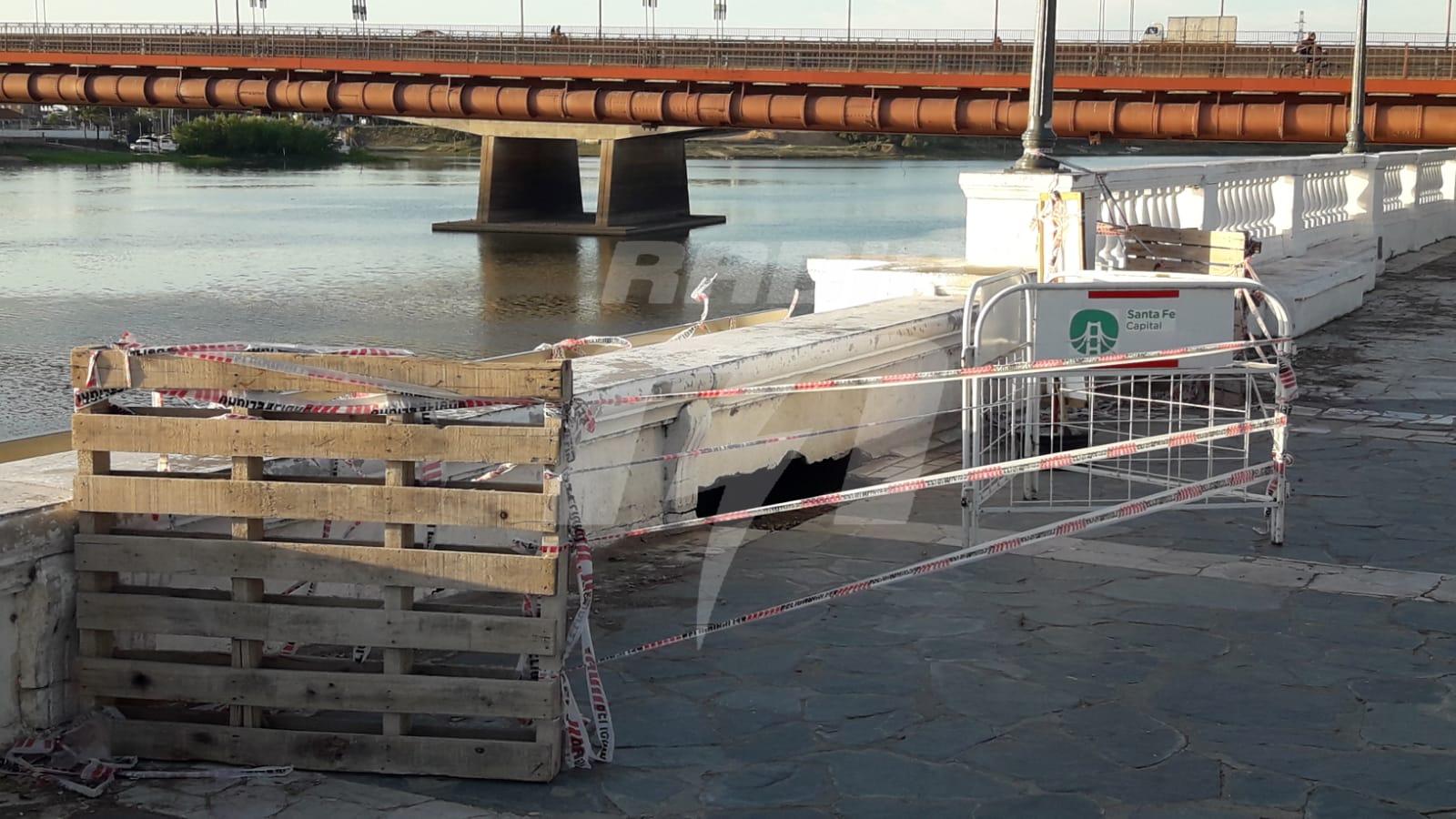 Una de las barandas de la costanera oeste registró un importante agujero a pocos metros del Puente Colgante.