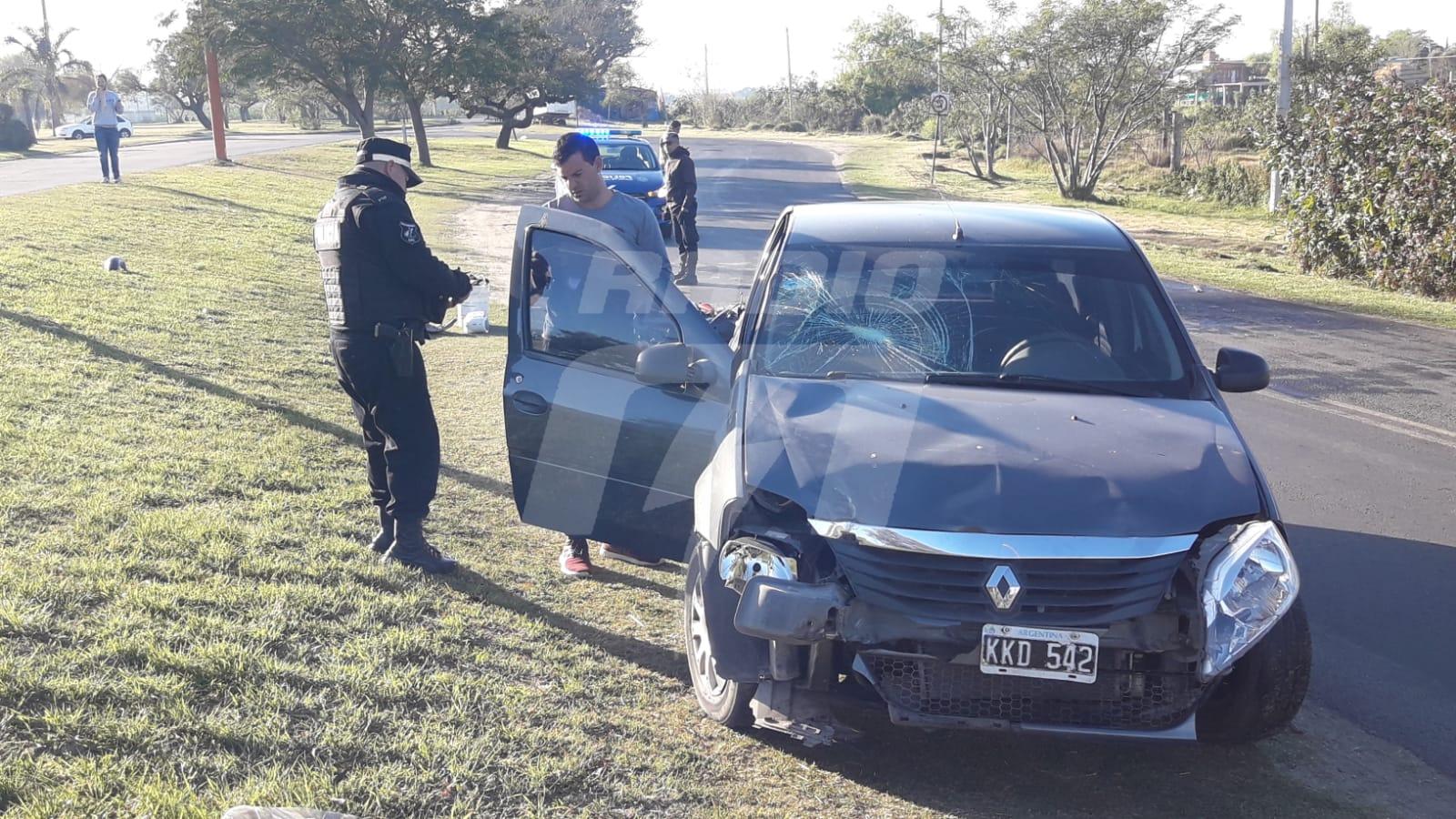 A la altura del ingreso a la jurisdicción de Alto Verde, una motocicleta y un automóvil protagonizaron un accidente. El rodado transitaba por la curva que une la Ruta 168 con el camino hacia la barriada costera cuando chocó a un motociclista que se encontraba cargado de materiales de trabajo.