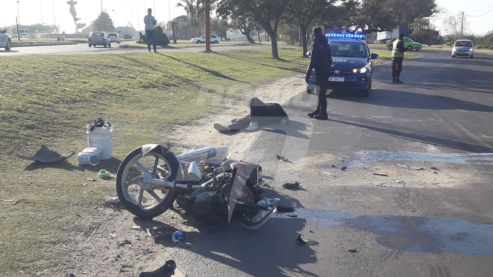 El conductor del birrodado salió expedido, impactó contra el parabrisas del coche y cayó hacia el suelo, donde quedó tendido. Mientras que su moto terminó destrozada, al igual que parte del auto.