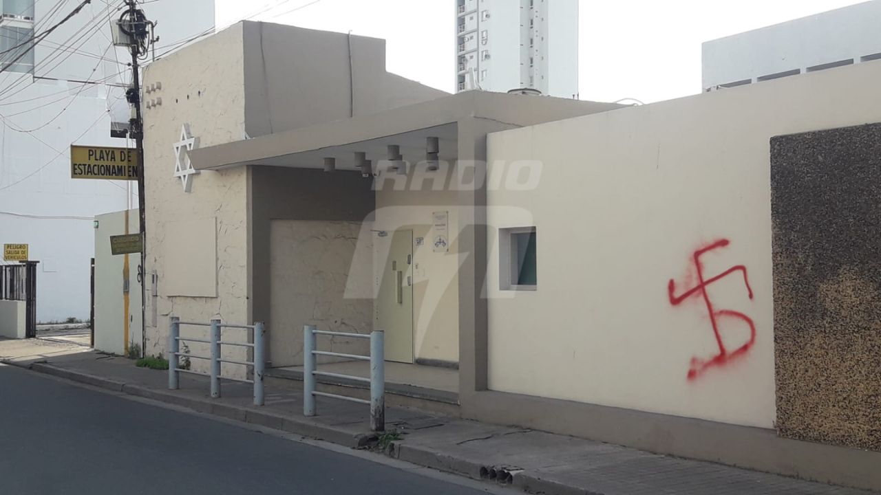 El edificio perteneciente al colectivo judío local, donde también funciona un reconocido museo religioso, amaneció hoy con graffitis en sus paredes con forma de cruces esvásticas, reportó el móvil de Radio EME.