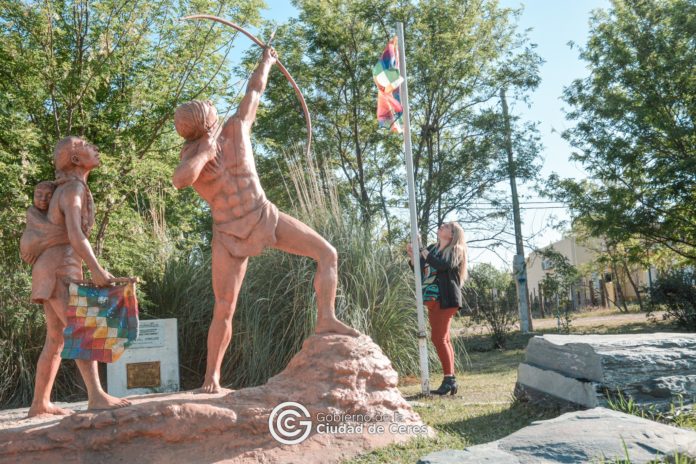 Tal como la efeméride, esta plaza es un espacio para repensarnos en el derecho a ser diferentes. Para recordar esta fecha tan importante, la intendente Dupouy izó una bandera wiphala en este monumento