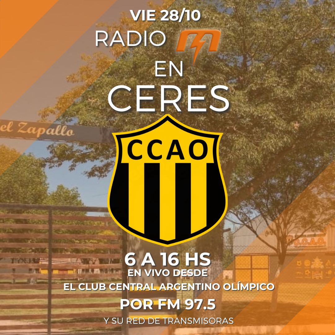 Radio EME se trasladó a Ceres. Este viernes 28 de octubre se realiza una transmisión especial desde el Club Central Argentino Olímpico, institución deportiva tradicional de la ciudad del departamento San Cristóbal.