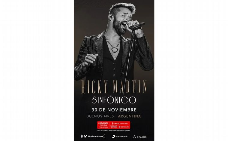 Ricky Martin anunció su regreso a Argentina tras dos años con su tour «Sinfónico» y se presentará el 30 de noviembre de este año en el Movistar Arena, en Buenos Aires.
