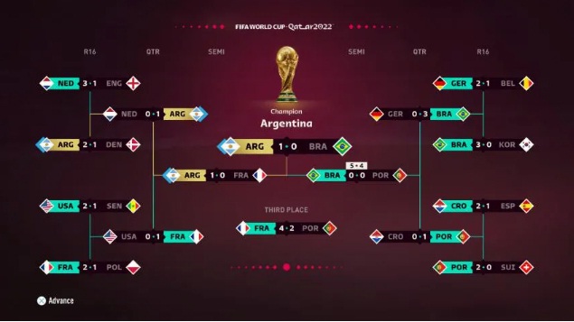 Según el juego, Argentina superaría por un gol a Brasil en la final tras haber superado a Francia, Holanda y Dinamarca. Francia quedaría tercera venciendo a Portugal. Como curiosidad, España caería en octavos de final contra Croacia.