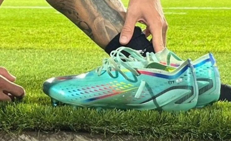 El futbolista Rodrigo De Paul usó unos botines con la leyenda «TTT» en uno de sus costados, en alusión a la típica frase de la cantante Tini Stoessel, su novia.
