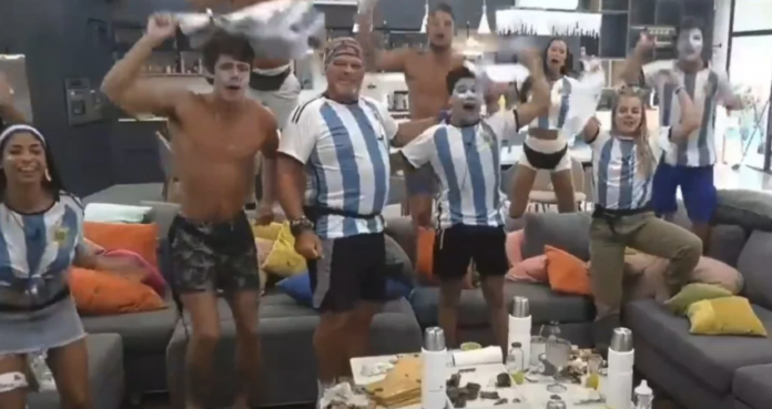 Durante la tarde del sábado los jugadores del reality estuvieron viendo el partido con comida y además se vistieron para la ocasión con camisetas celestes y blancas, pinturas de los mismos colores y hasta tuvieron cotillón.