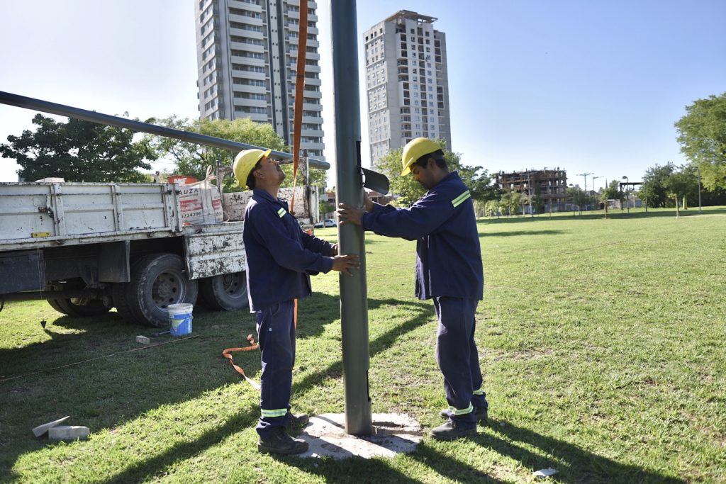 En el marco del plan integral que lleva a cabo la Municipalidad en el Parque Federal, se avanza en la nueva iluminación de todo el espacio. De este modo, con la construcción de un sendero peatonal y deportivo, forestación y la instalación de juegos infantiles, entre otras intervenciones, se cumple con la meta de mejorar ese importantísimo pulmón verde con el que cuenta la capital de la provincia.