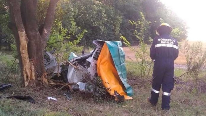 Producto de la violencia del choque uno de los ocupantes del auto perdió la vida al instante, en tanto que los Bomberos de Casilda tuvieron que trabajar en el lugar para rescatar y trasladar al otro joven que ingresó al Hospital San Carlos de la vecina localidad con heridas de gravedad.