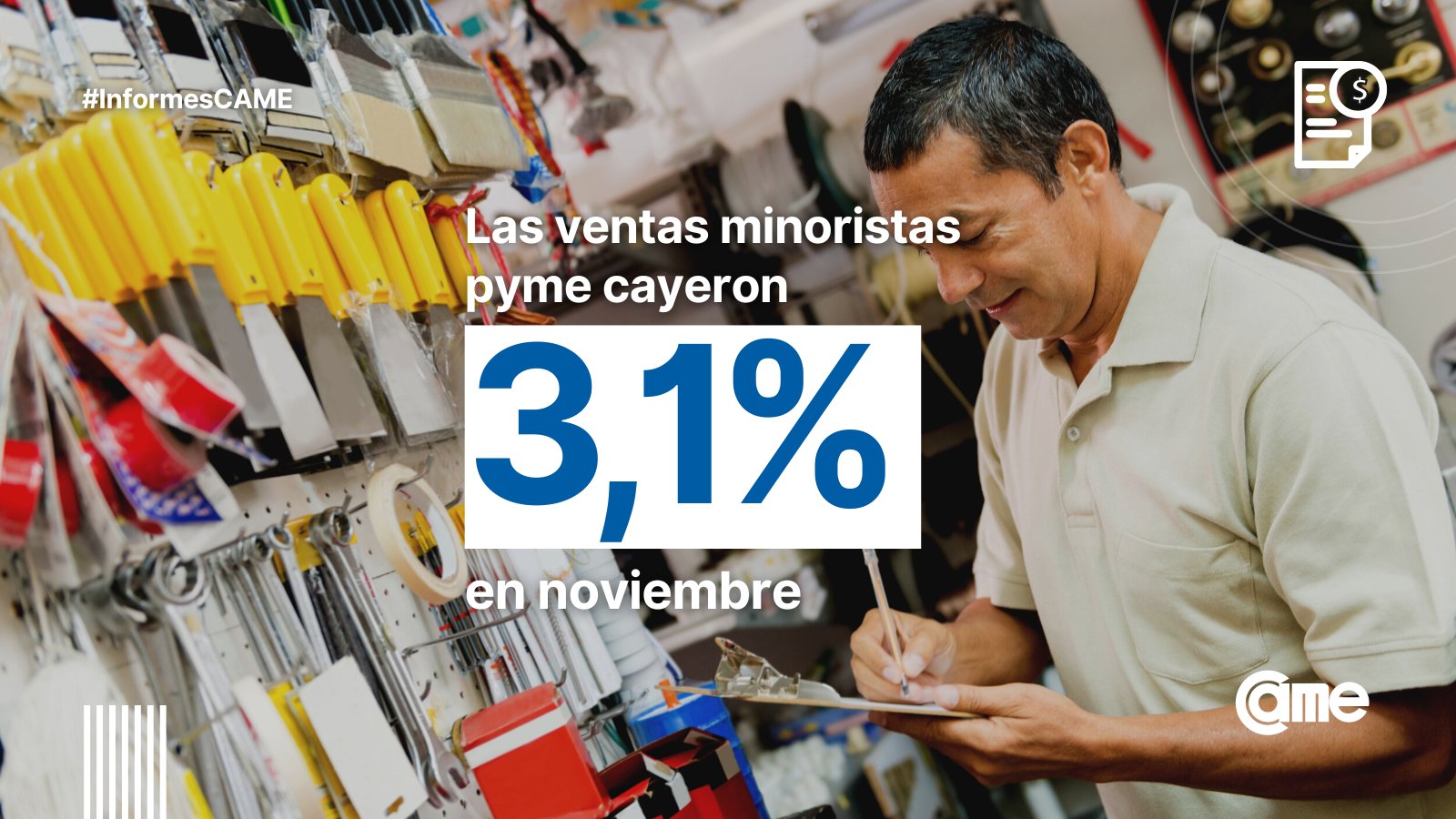 ➡ Las #ventasminoristas #pymes descendieron 3,1% en noviembre frente al mismo mes del 2021.