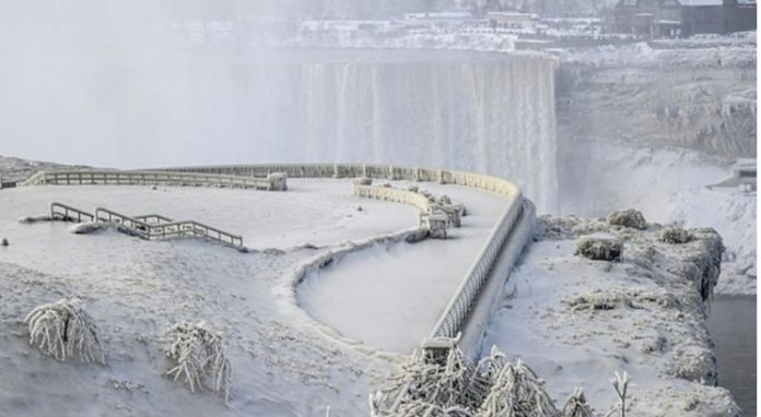 La atracción turística que limita los dos países del norte de América se vio afectada por la fuerte ola de frío rodeándose de nieve y hielo. El lugar que recibe miles de turistas al año se congeló parcialmente debido a las temperaturas extremas.