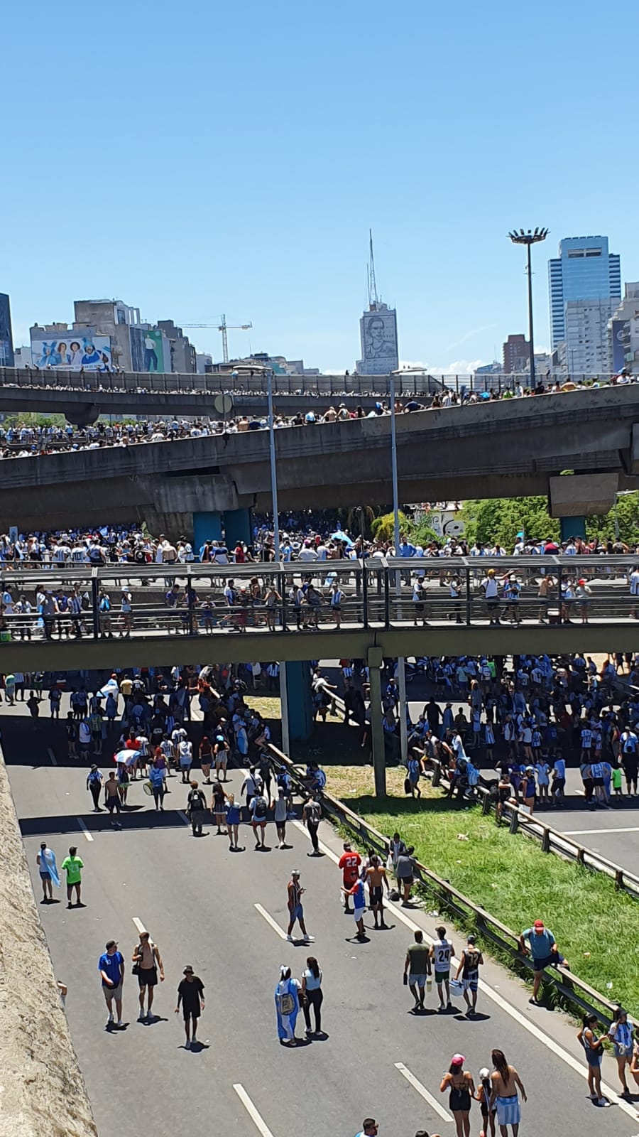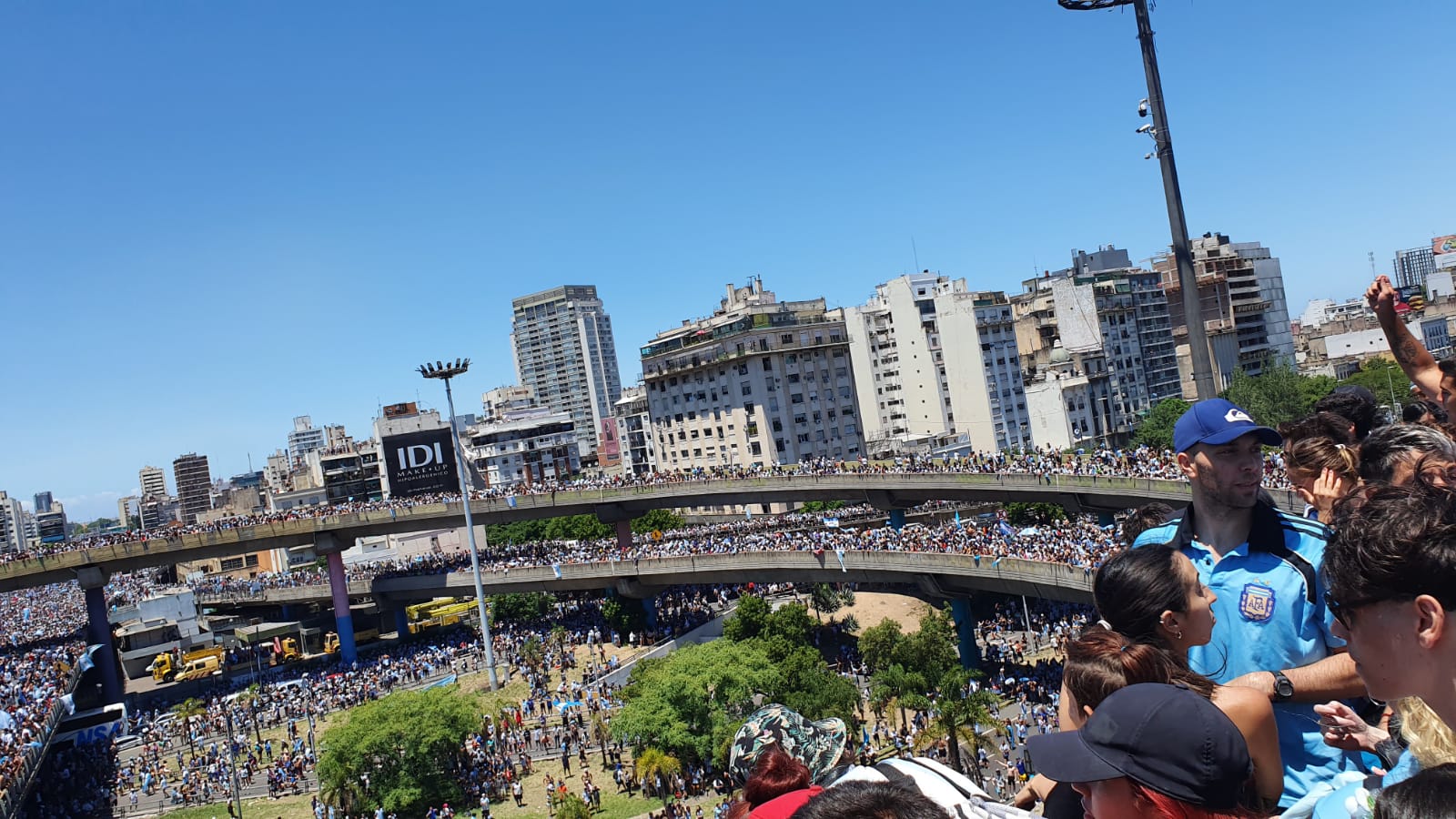 «Los campeones del mundo están sobrevolando todo el recorrido en helicópteros porque se hizo imposible seguir por tierra ante la explosión de alegría popular. Sigamos celebrando en paz y mostrándoles nuestro amor y admiración!», indicó previamente la vocera presidencial, Gabriela Cerruti.