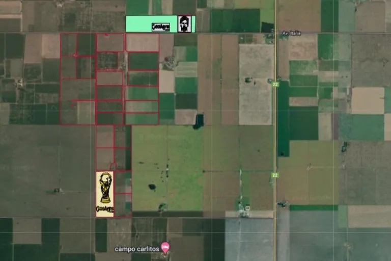 Danel Leiva, que tiene su campo en Colonia Alpina, Santiago del Estero, utilizará, por ejemplo, dos lotes, uno de maíz y otro de soja, para hacer no solo la cara del Lionel Messi, sino también la del tan deseado trofeo. “La copa es más grande y cubre 20 hectáreas, mientras que el rostro de Messi tiene 10 hectáreas y va a ser en el mismo establecimiento en lotes continuos”, avisó.