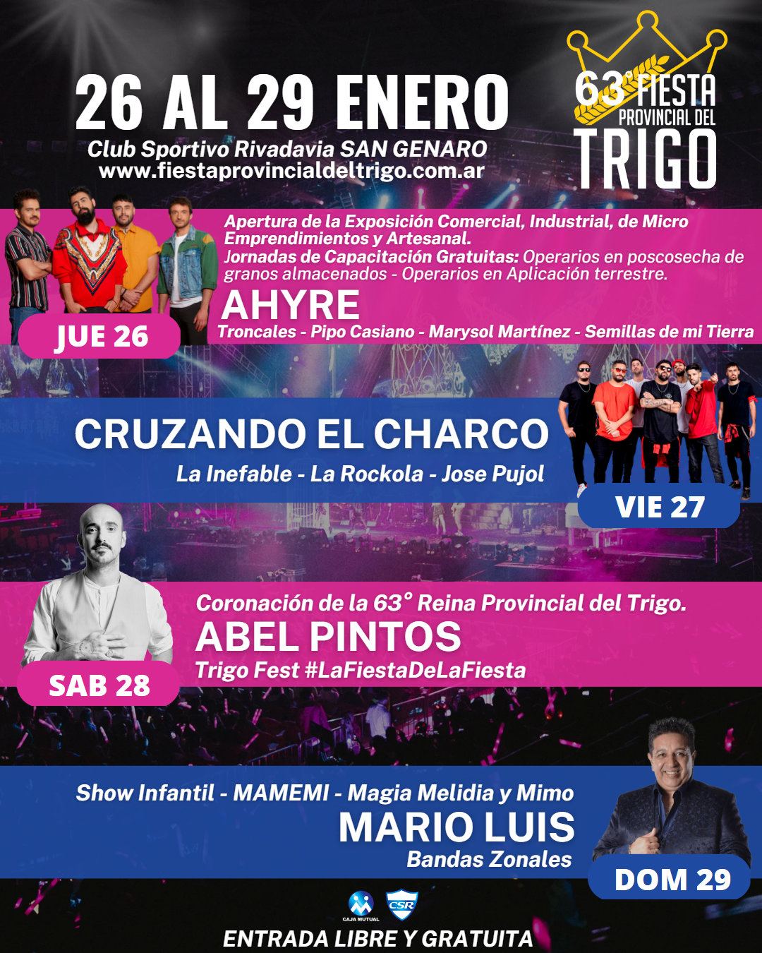 Se lleva a cabo en San Genaro, provincia de Santa Fe. Lo organiza el Club Sportivo Rivadavia de esa localidad. Se llevará a cabo este fin de semana del 26 al 29 de enero. Entre grandes artistas, dirá presente Abel Pintos.