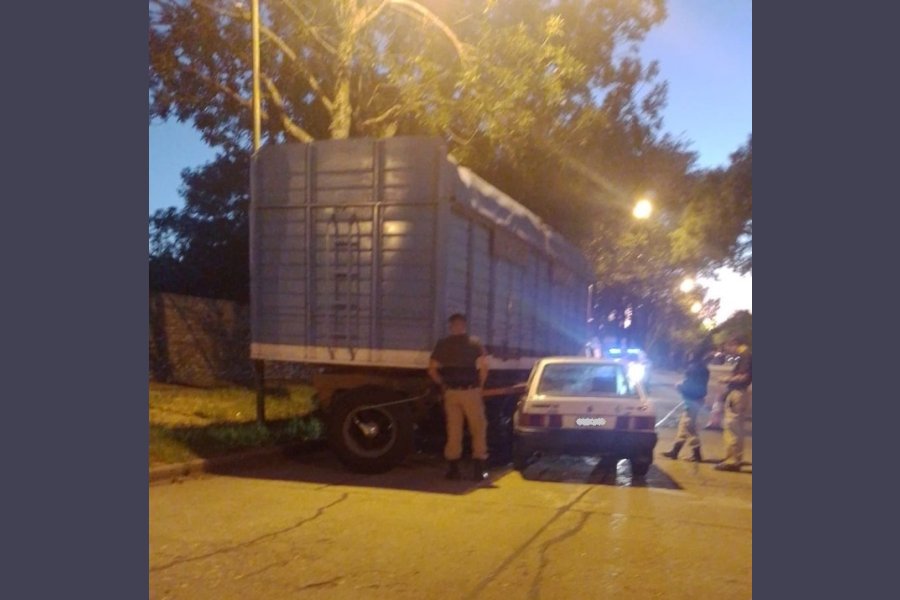 Con 1.80 gramos de alcohol por litro de sangre un conductor terminó contra un acoplado en barrio Los Nogales,de Rafaela. Iba a contramano.