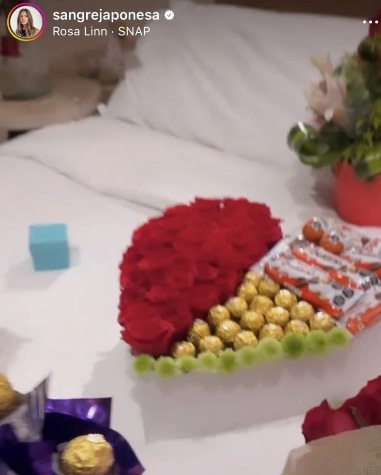 Sin embargo, una de las fotos compartidas por la China despertó rumores de casamiento entre los jóvenes. Sorprendida por el regalo que le hizo su pareja, María Eugenia Suárez publicó una historia en donde se podía ver una habitación de lujo llena de rosas rojas, pétalos de flores y chocolates. Si bien hasta el momento era una escena romántica tradicional, en la grabación se dejó ver una pequeña cajita celeste que despertó rumores.