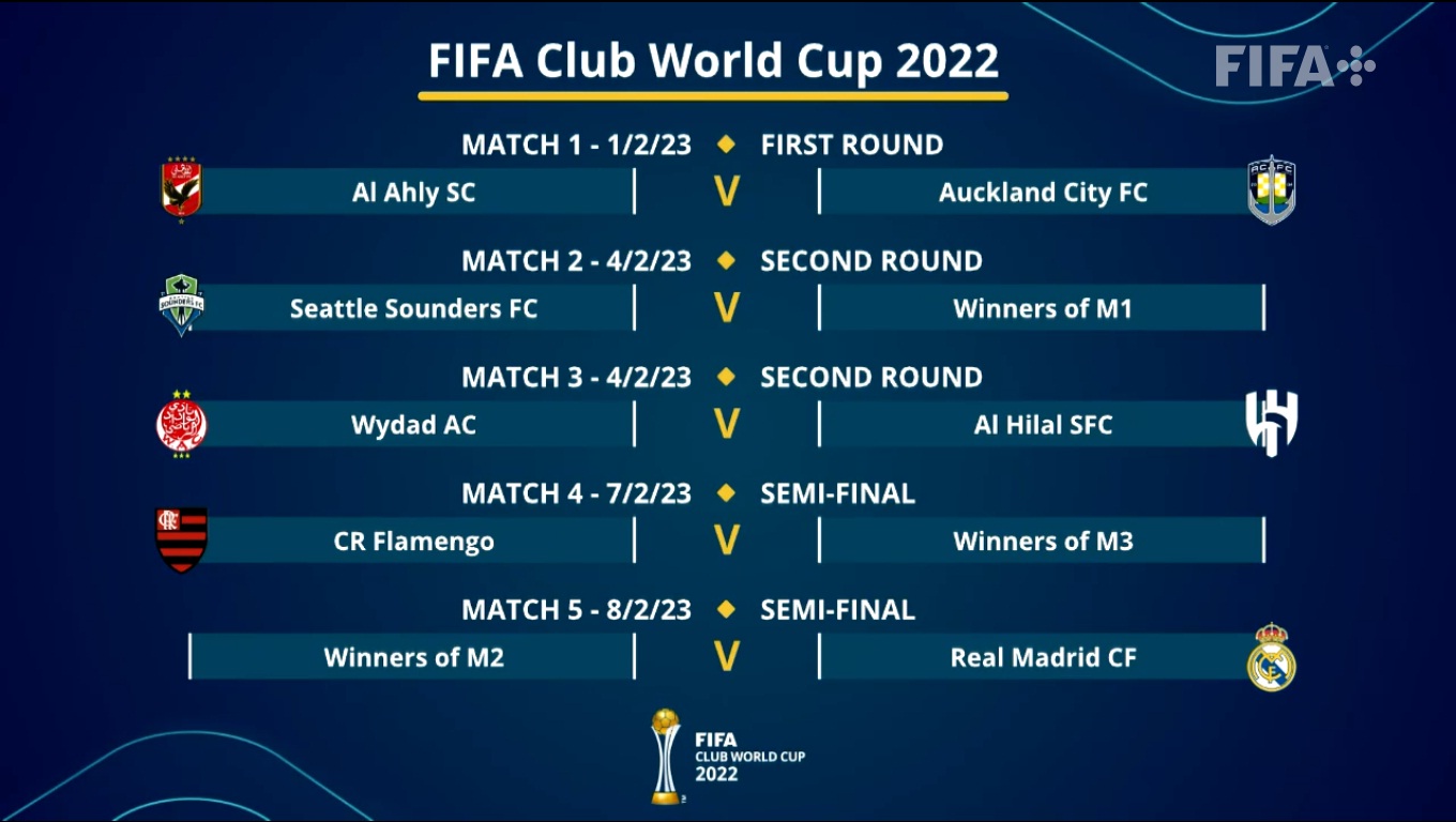 Por su parte, al Real Madrid, tetracampeón histórico, le aguardan en semifinales el Seattle Sounders, el Al Ahly o el Auckland City. El rival del Flamengo saldrá del cruce en cuartos de final entre Wydad o Al Hilal.