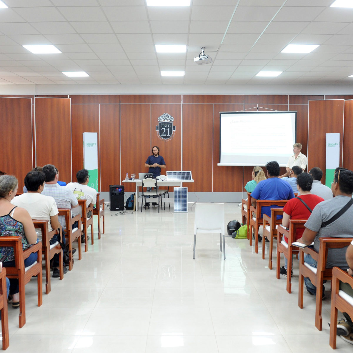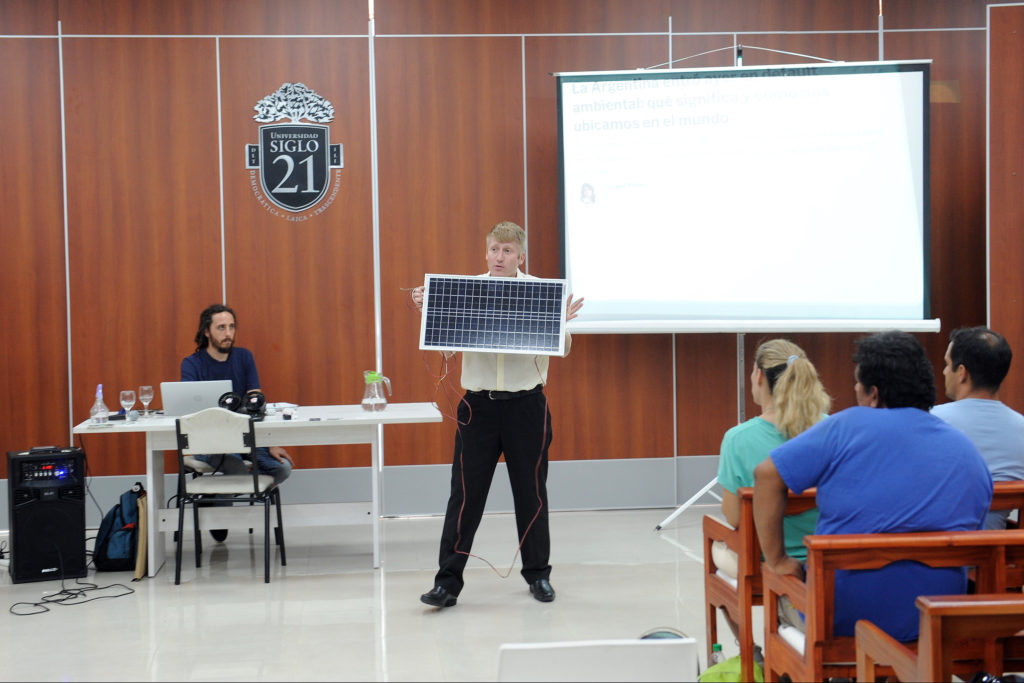 Este lunes, en la sede de la Universidad Siglo XXI, se realizó la primera clase conjunta para tres cursos del eje Empleos verdes: Eficiencia energética y domótica, Instalador de paneles fotovoltaicos, e Instalador de sistemas de captación solar térmica. La misma contó con la participación de más de 100 personas.