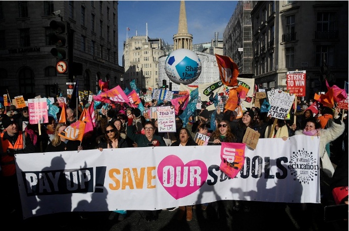 En ese contexto, miles de trabajadores británicos salieron a las calles a reclamar aumentos salariales. Los docentes fueron el principal grupo de protesta. Incluso en varios lugares pudieron verse a niños y jóvenes que se sumaron a los reclamos en su condición de alumnos. De hecho, se calcula que unas 20 mil escuelas de Inglaterra y Gales se verán afectadas por el primero de siete días de huelgas entre febrero y marzo.