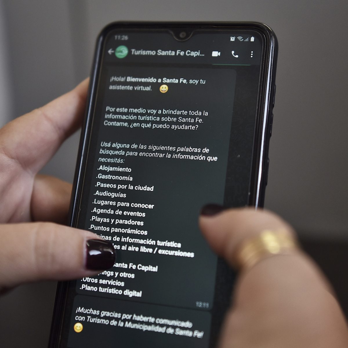 De este modo, quienes necesiten información turística pueden comunicarse a través de la aplicación WhatsApp, sólo a través de mensajes de texto, con el número 3424063525 y recibirán como respuesta un mensaje automatizado con una lista de palabras sobre las que el bot puede darles información. Es importante remarcar que el menú funciona en todos los casos con palabras claves que recibe a través de mensajes de texto, es decir, que no funcionará con mensajes de voz ni otro formato multimedia.
