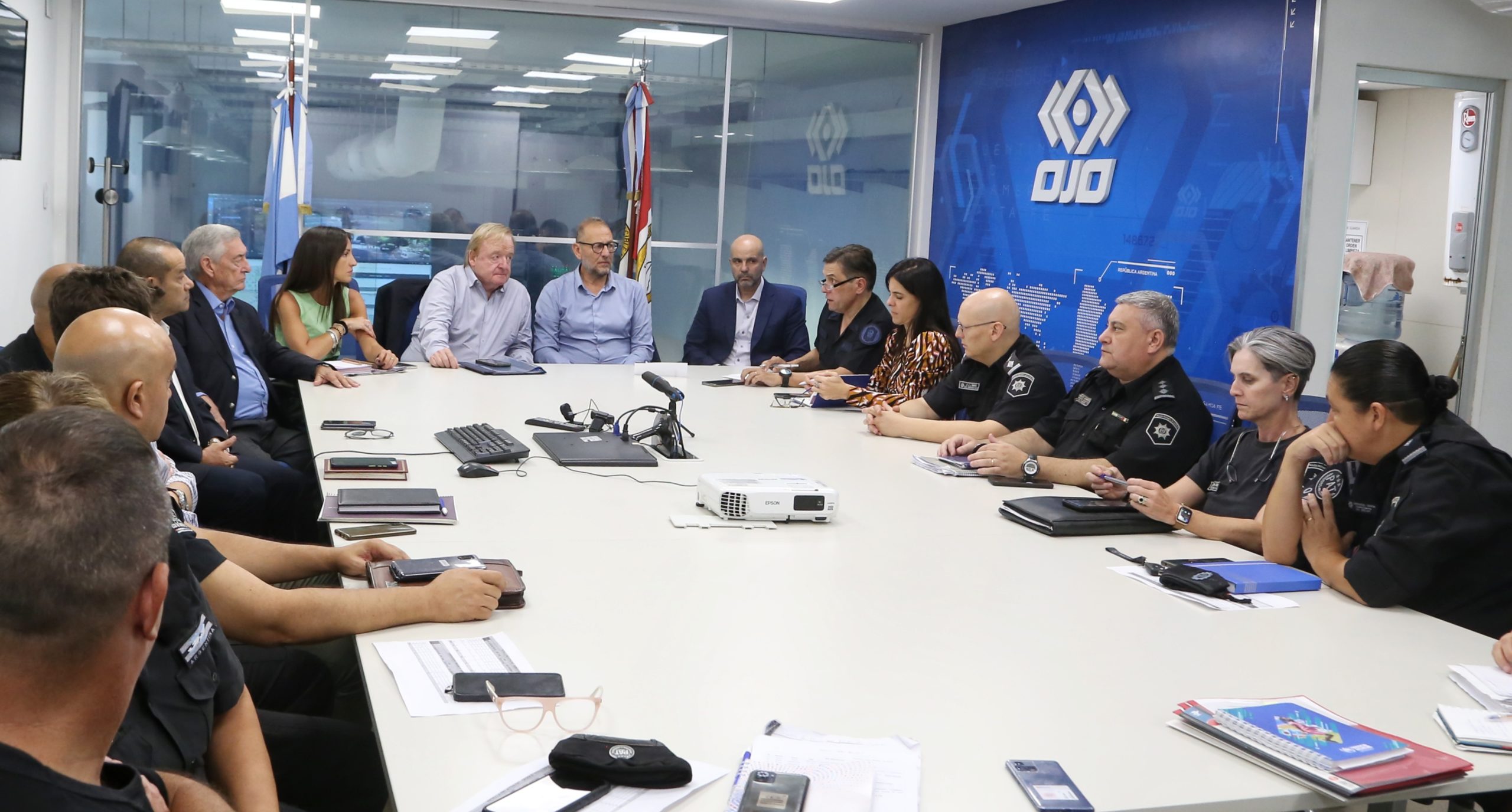 La encabezaron los ministros de Gestión Pública, Marcos Corach, y de Seguridad, Claudio Brilloni. Se revisaron y definieron tareas de saturación, y de aumento del nivel de presencia en zonas críticas, además de la llegada de nuevo equipamiento.