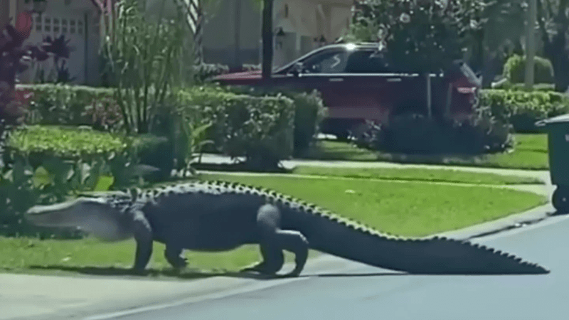 Residentes de un un lujoso complejo en la ciudad de Naples en Florida, Estados Unidos, lograron grabar con sus teléfonos celulares la tranquila caminata de un enorme caimán mientras cruzaba la calle en su comunidad.