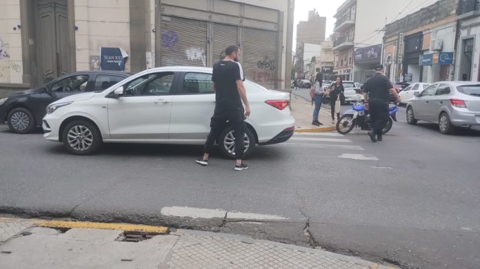 Hoy por la tarde chocaron un auto y una moto. Fue en el centro de la ciudad de Santa Fe, precisamente, en la esquina 25 de Mayo y Gobernador Crespo. Se trata de un Fiat Cronos, color blanco, y una moto Gilera Smash 110cc.