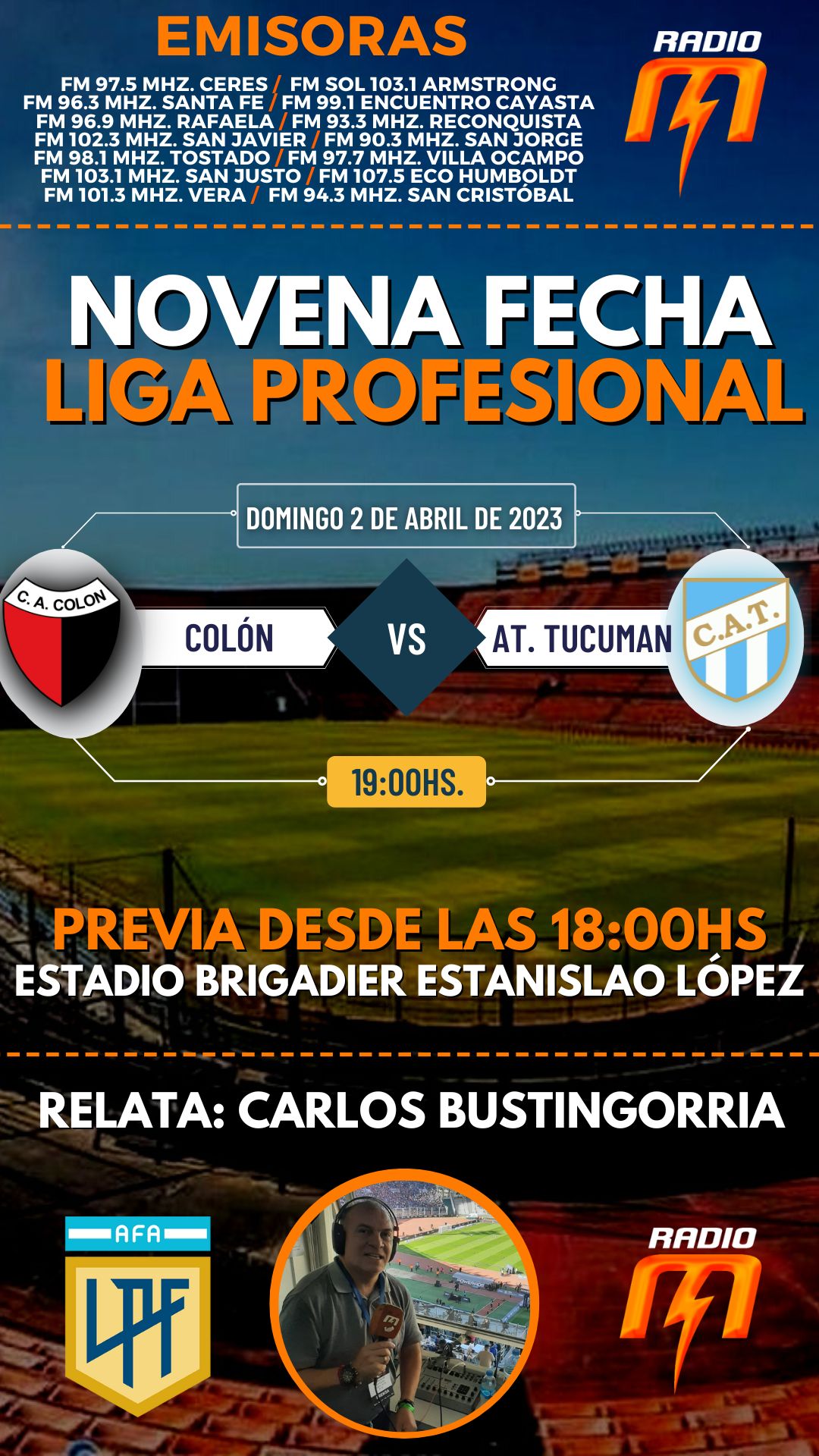El sabalero recibe a Atlético Tucumán porla 9na fecha de la Liga Profesional del Fútbol Argentino. Será desde las 19hs., previa desde las 18hs., con los relatos de Carlos Bustingorria.