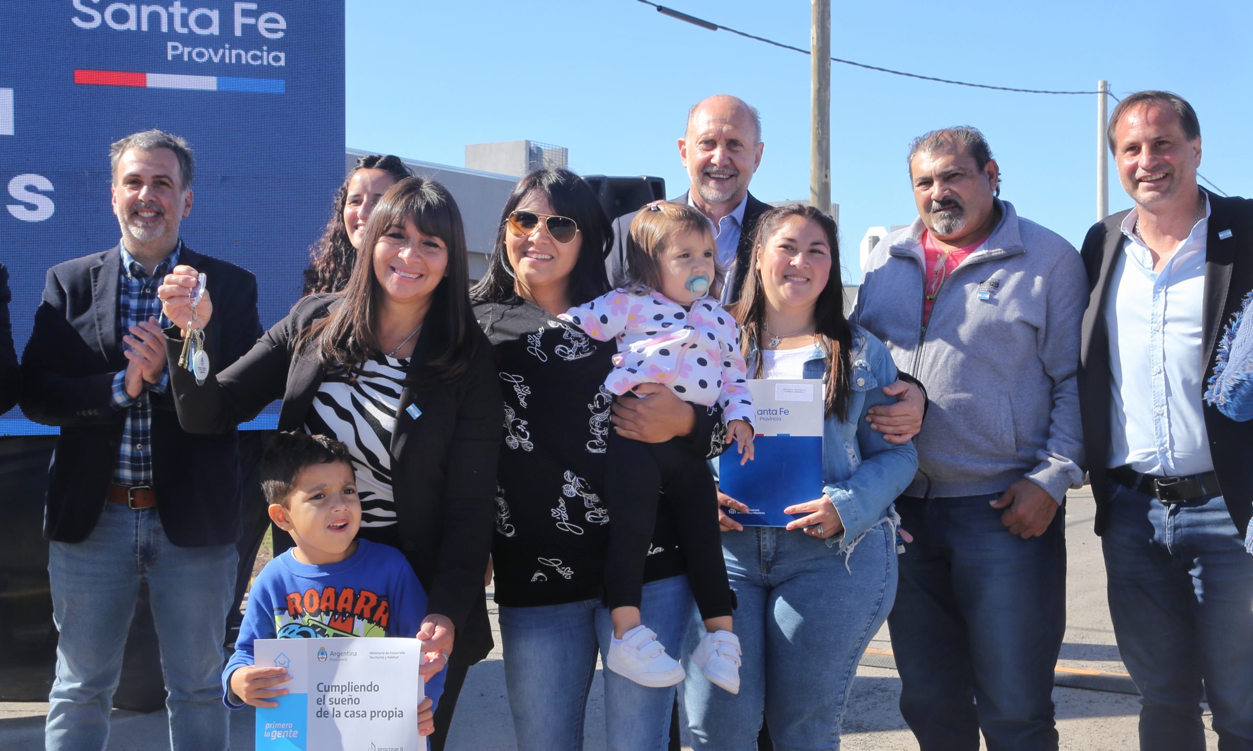 Durante la entrega de llaves que se realizó este miércoles, Perotti afirmó que “coordinar los esfuerzos es la mejor manera de poder llegar a soluciones como las que hoy estamos teniendo aquí, con los planes provinciales, nacionales, con el aporte de terrenos de comunas y municipios”.