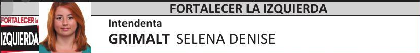 10. La lista «Frente de Izquierda y Trabajadores-Unidad» tiene dos candidatos. la otra es la precandidata a intendenta Selena Denise Grimalt, por «Fortalecer la Izquierda».