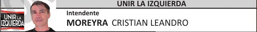 9. La lista «Frente de Izquierda y Trabajadores-Unidad» tiene dos candidatos. Uno de ellos es el precandidato a intendente Cristian Leandro Moreyra, por «Unir la Izquierda».