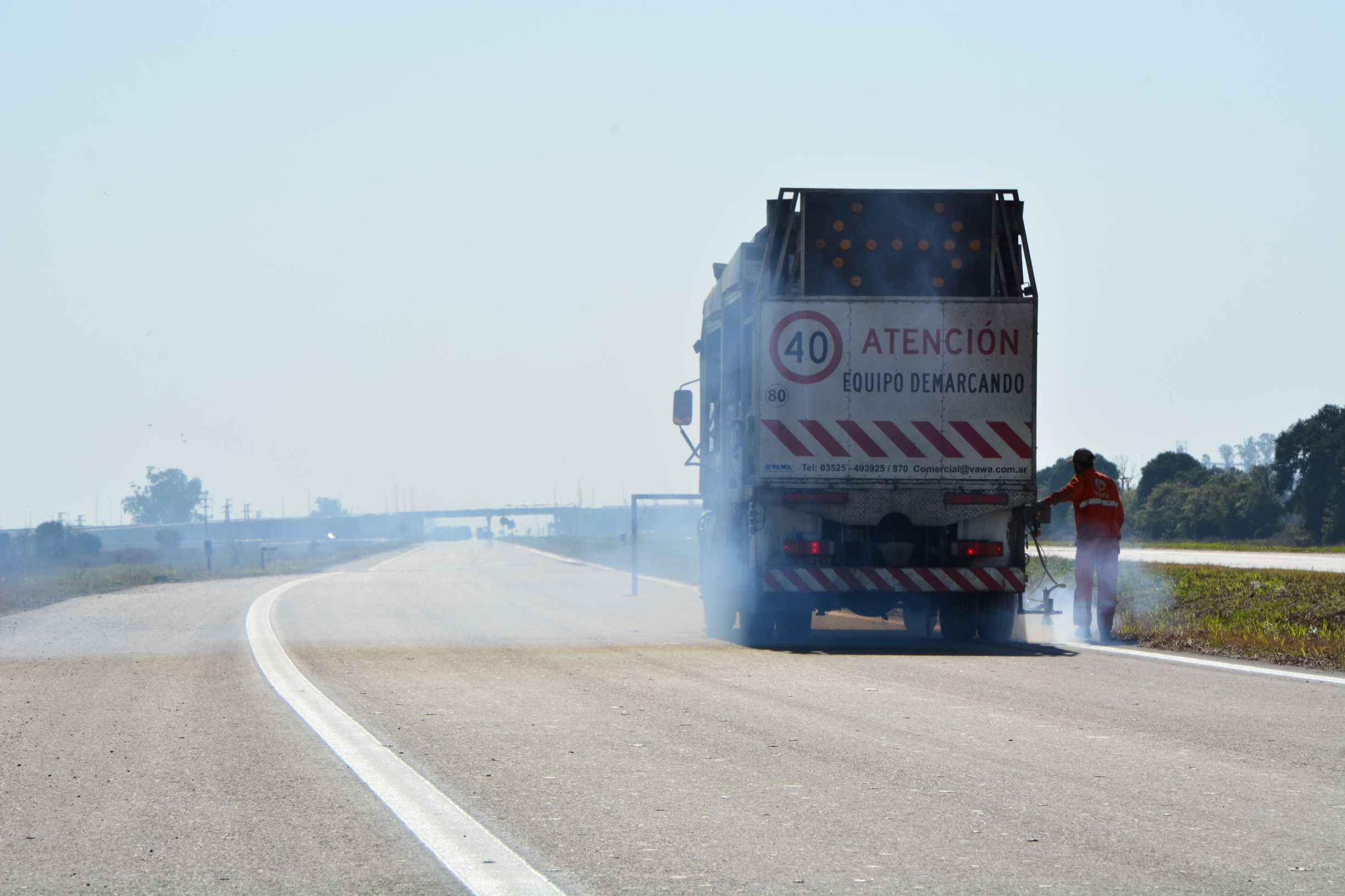 En cuanto a los trabajos en marcha sobre la Variante Oeste de Rafaela, los avances se sostienen en la demarcación horizontal de las nuevas calzadas. Esto comprende el pintado de las líneas de borde y de eje, más las ramas de giro en los intercambiadores y sentidos de circulación. Paralelamente, se completa la colocación de los pórticos y ménsulas metálicas para la instalación de la nueva cartelería indicativa, en este caso tanto para la Variante Oeste como para el tramo entre Rafaela y Ruta Nacional Nº 19.