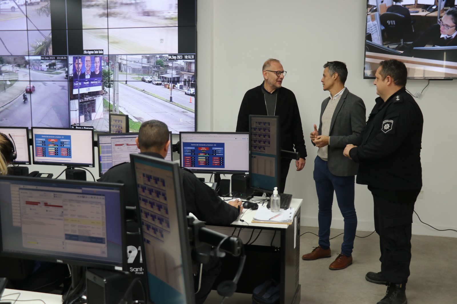 El ministro de Gestión Pública, Marcos Corach, recorrió este lunes la Central 911 de la ciudad de Santa Fe, lugar donde trabajan unas 90 personas para brindar asistencia en seguridad y despachar a los más de 100 móviles que son requeridos para atender emergencias.