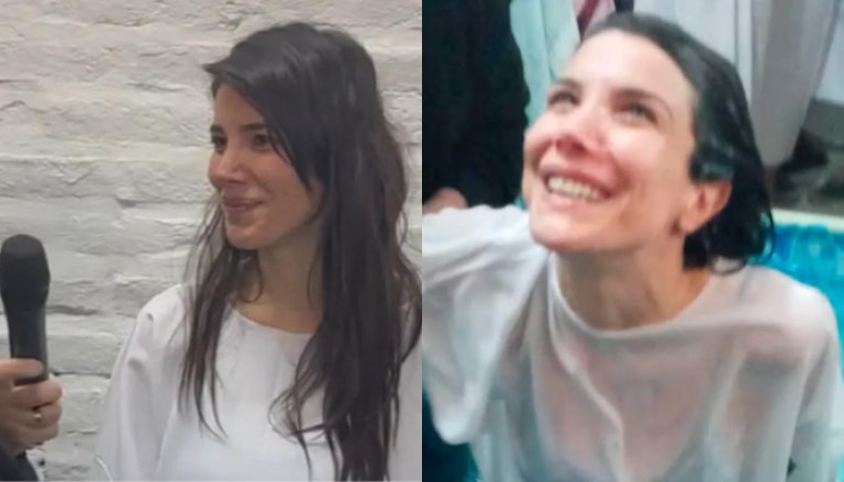 En las fotos que compartió se puede ver a la modelo en una “pelopincho” junto al pastor que la bautizó bajo el rito evangelista.