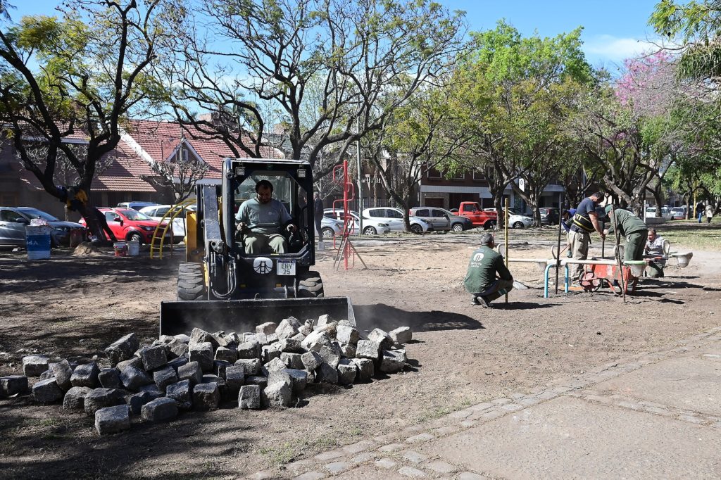 Las máquinas trabajan en la nivelación del piso para luego colocar nuevos juegos infantiles y mobiliario urbano como bancos y cestos de basura, como así también la cartelería para brindar información a los visitantes. Es importante mencionar que en este lugar, se inauguró el año pasado el Paseo de la Memoria, donde se colocaron tres durmientes de ferrocarril de madera de quebracho, intervenidos con las palabras Memoria, Verdad y Justicia.