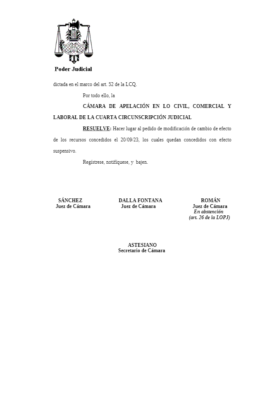 En la resolución de este 28 de Septiembre, los jueces Sánchez y Dalla Fontanna deciden hacer lugar al pedido de la empresa Vicentín, mientras que el juez de Cámara Román se abstuvo.