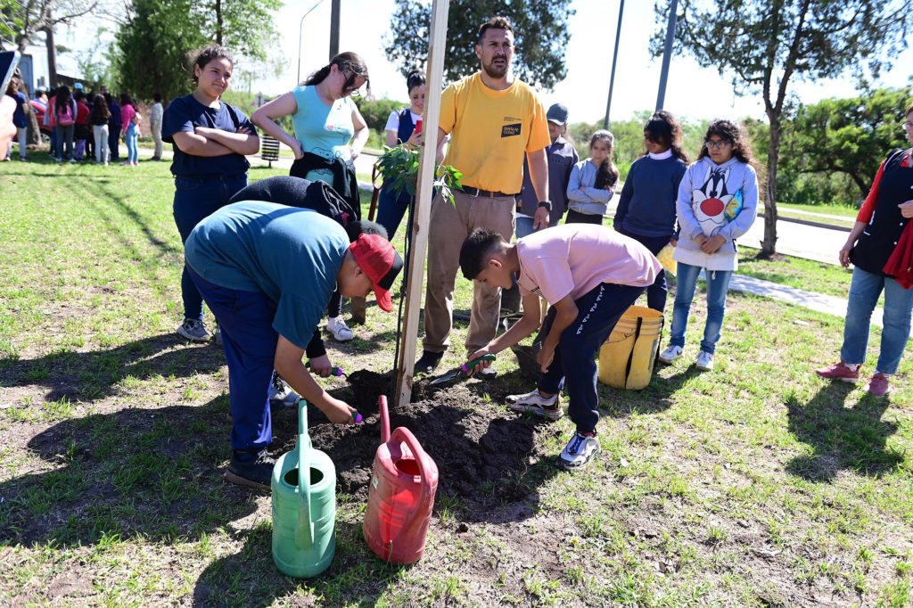 Una de estas jornadas se concretó en la plaza El Vergel, de Peñaloza y Piedrabuena. Allí, además de plantar ejemplares, se realizaron mediciones sonoras, avistaje de aves y charlas sobre el reconocimiento de la biodiversidad con alumnos y alumnas de escuelas de la zona. Allí, el intendente Emilio Jatón, recordó que ese espacio verde es “emblemático para la gestión municipal, ya que lo hemos construido junto a los vecinos. Hoy vinimos para llevar adelante una jornada de concientización con los chicos, los jóvenes y todos los vecinos para el cuidado de los mismos”, indicó.