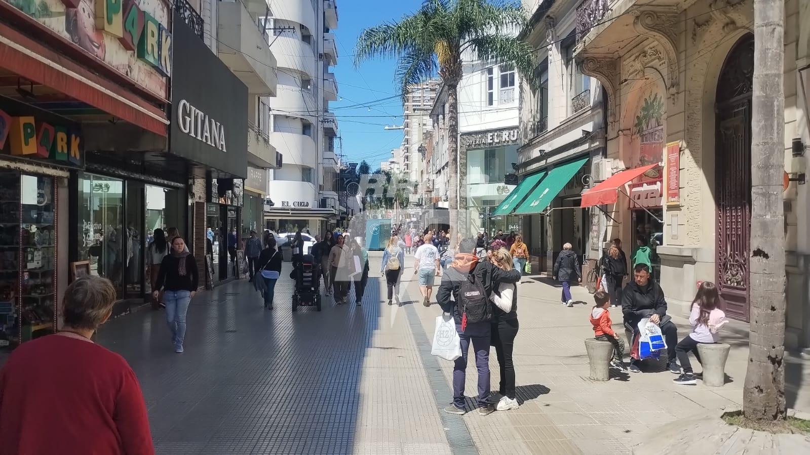 A pesar del feriado de hoy, los comercios decidieron abrir sus puertas de manera normal. En la Peatonal San Martín, los santafesinos aprovecharon la jornada para comprar los regalos para las madres.