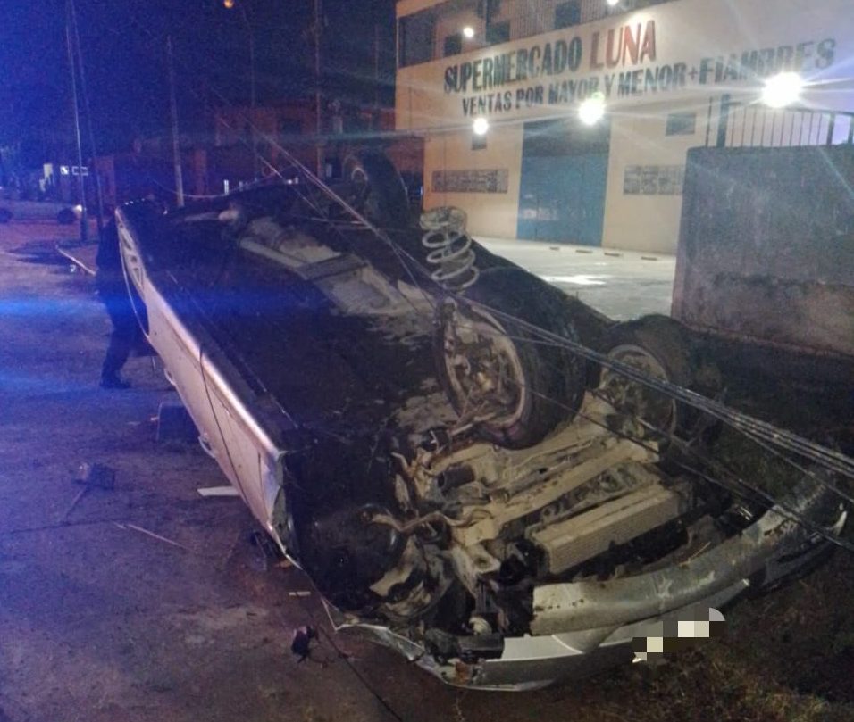En la madrugada de este sábado ocurrió un fuerte accidente de tránsito en Santa Fel. El hecho tuvo lugar en la intersección de las calles Pedro de la Vega y San Juan, precisamente, a la hora 1:45. El conductor perdió el control de su vehículo, subió al cordón, chocó contra un poste de luz y terminó volcando.