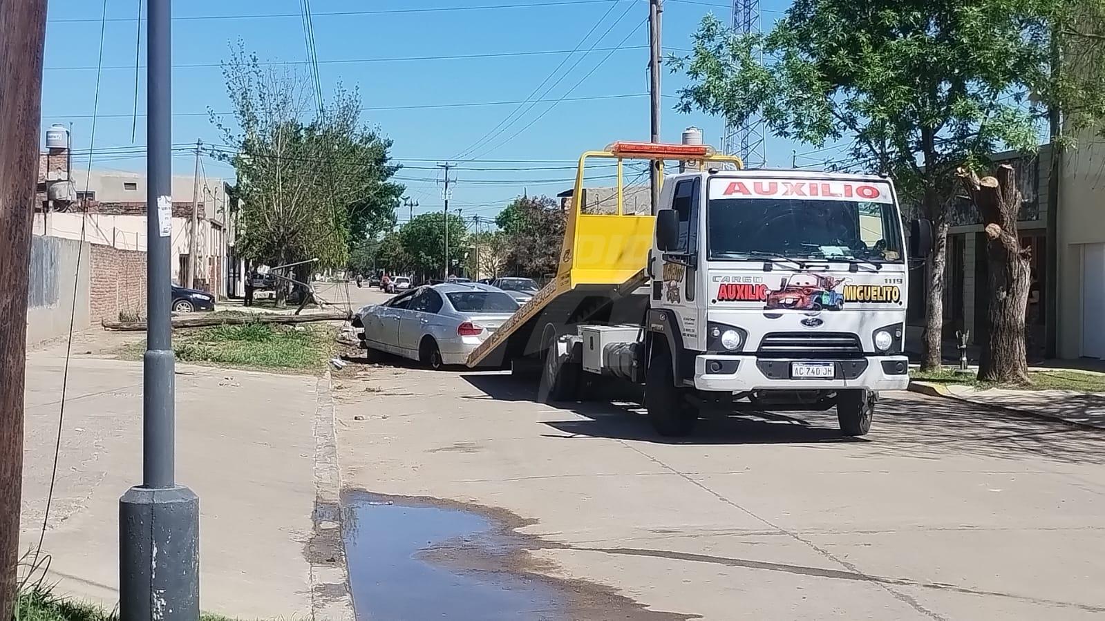 A mitad mañana, una grúa pasó a retirar el vehículo accidentado y robado por el lugar.